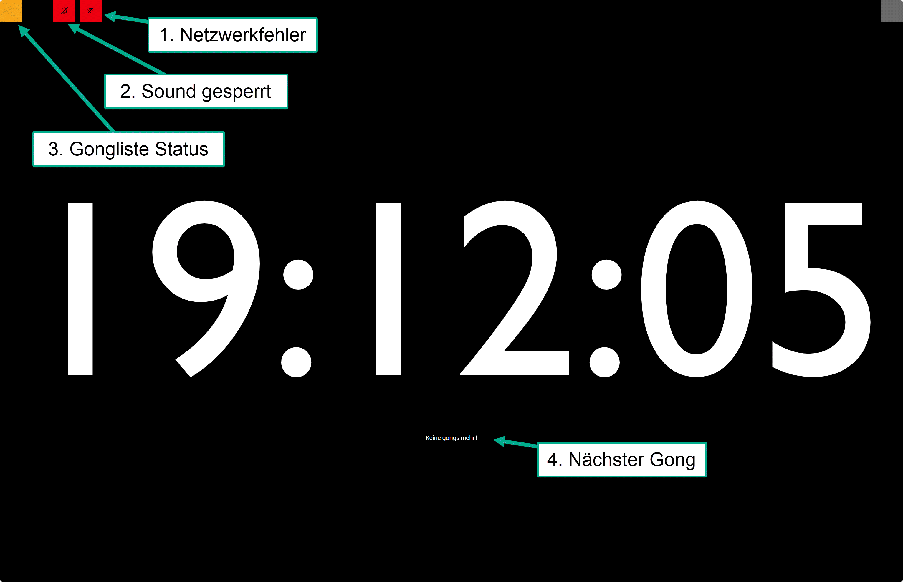 Rot: Das System hat noch keine Verbindung mit dem Server aufgenommen und noch keine Gongs empfangen.